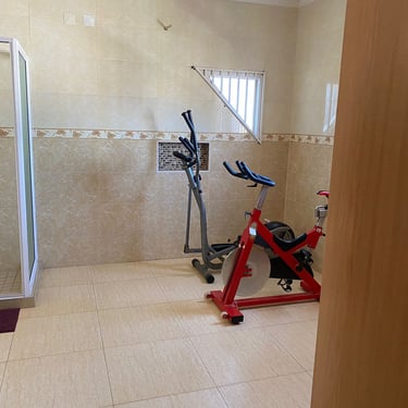 A propriedade inclui ainda quarto independente para empregado/a com casa de banho, além de dois portões automáticos que facilitam o acesso de viaturas. O espaço exterior permite estacionamento confortável para até três carros.